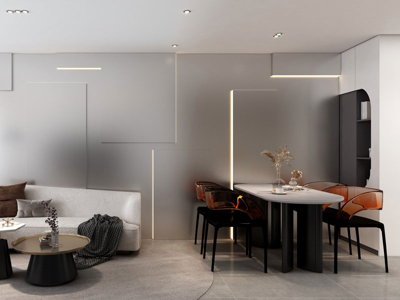 餐厅区域布局在客厅一侧,合理利用有限的空间,座椅造型选择创意十足,提升整体现代时尚感。