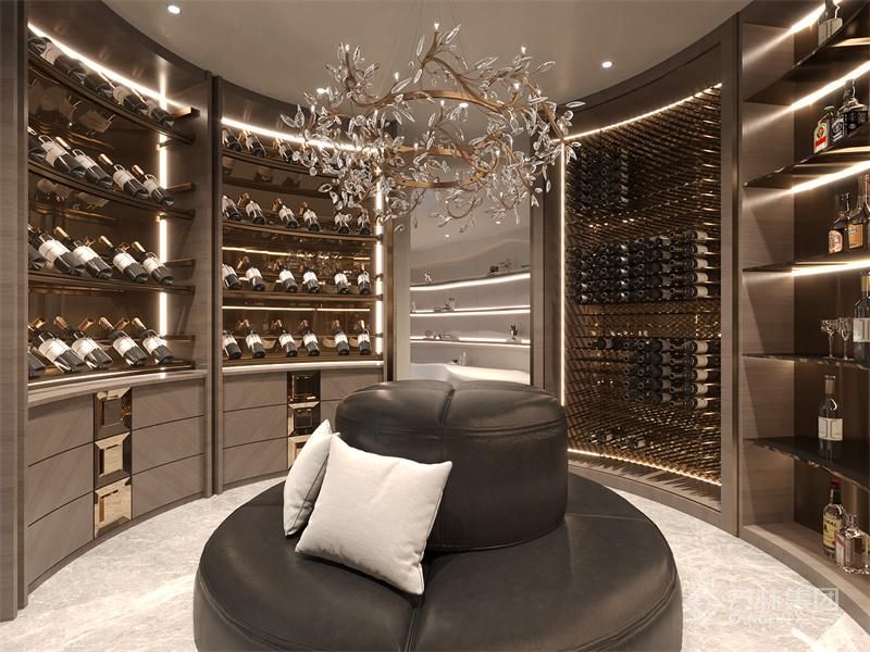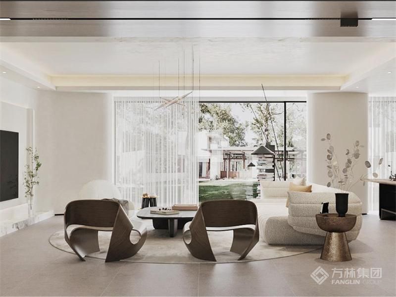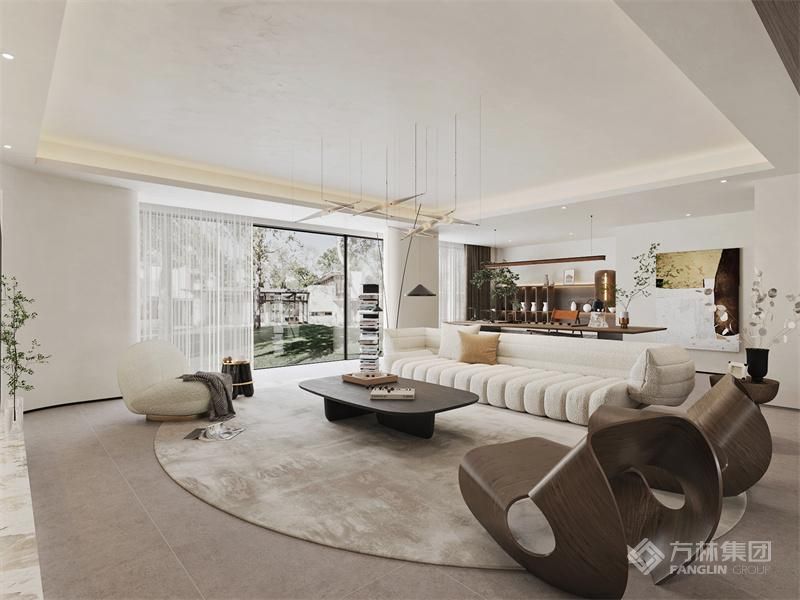 客厅结构上有柱子,所以我们设计时结合柱子弧形的电视背景墙设计,增加了仪式感同时也增加了隐私性,让画面可能性多一些。