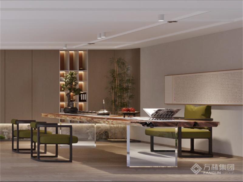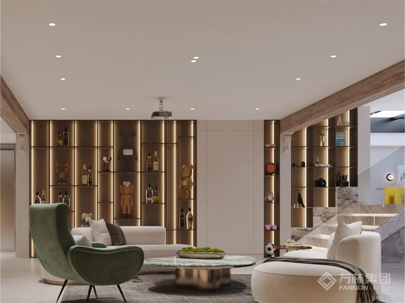 将现代时尚、趣味和新中式稳重、低奢进行有机结合,展现出空间的变化中求统一,整体延展性、稳重内敛以及气度。